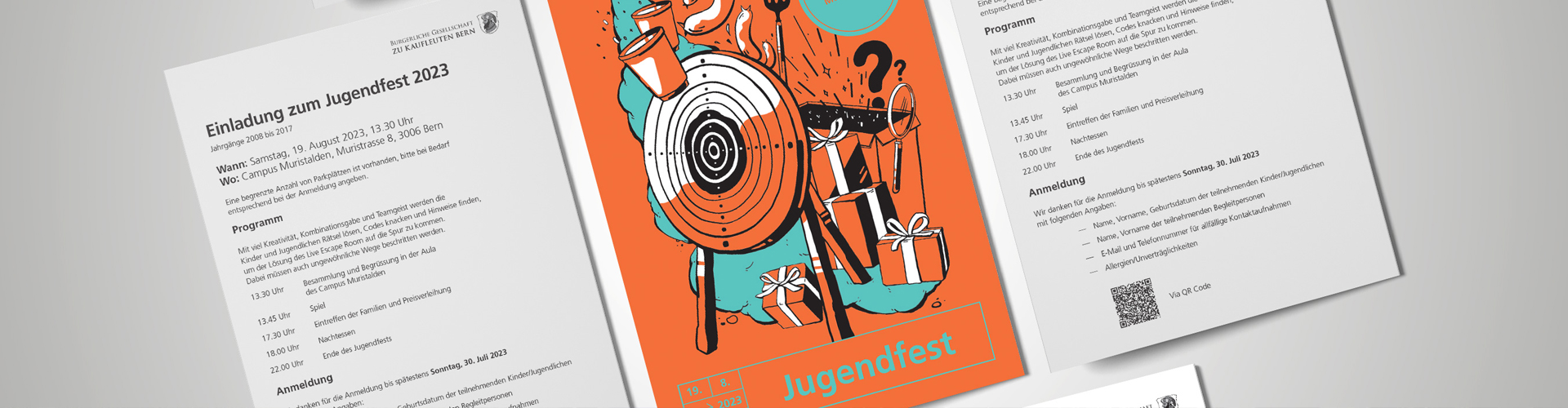 Die Gesellschaft zu Kaufleuten ist eine der 14 Gesellschaften und Zünfte der Berner Burgergemeinde. Für ihr traditionelles jährliches Jugendfest durften wir 2023 die Einladung gestalten.