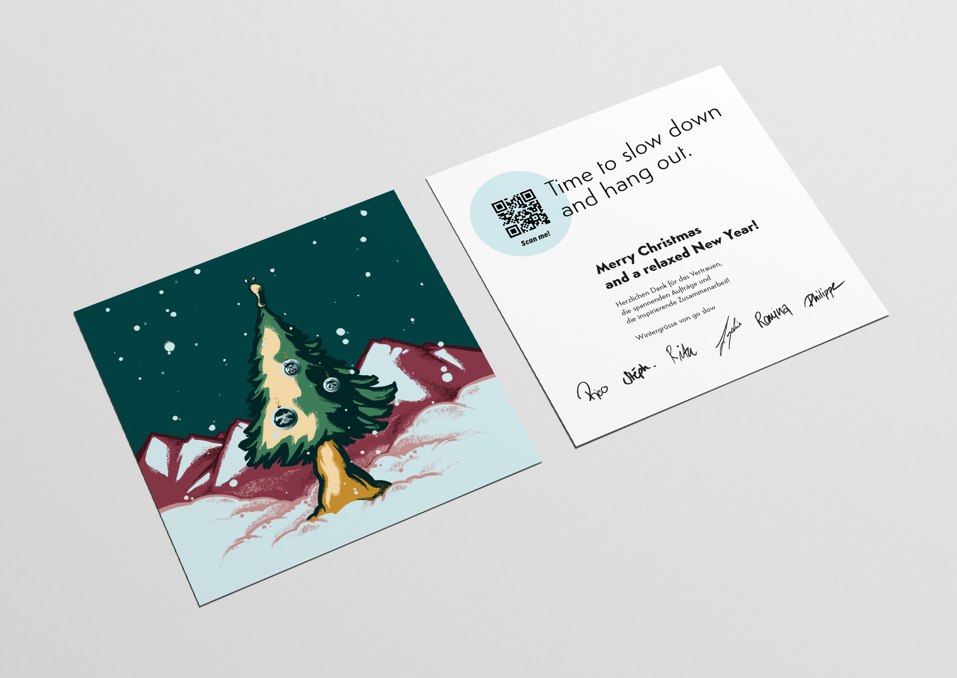 Zum Weihnachtsfest 2022 wünschten wir unseren Kunden eine entspannte Zeit mit «go slow, hang out».