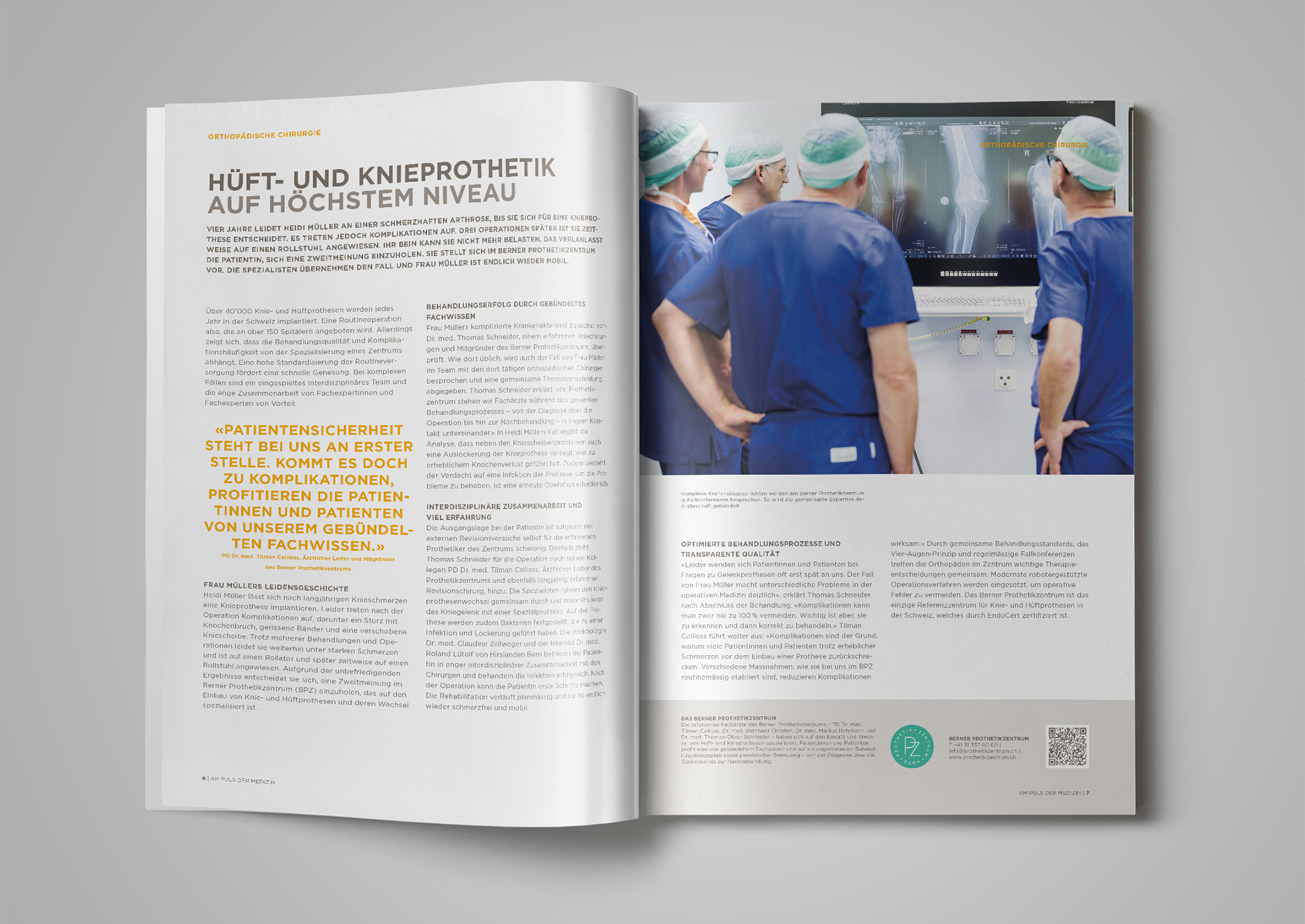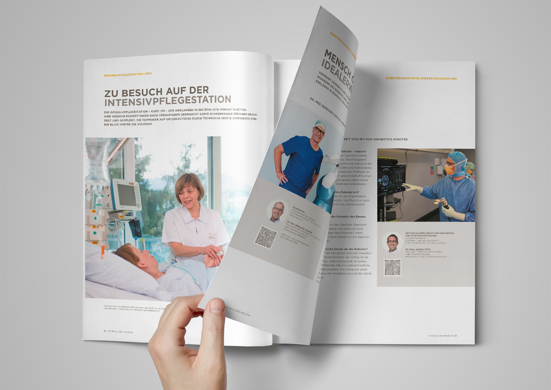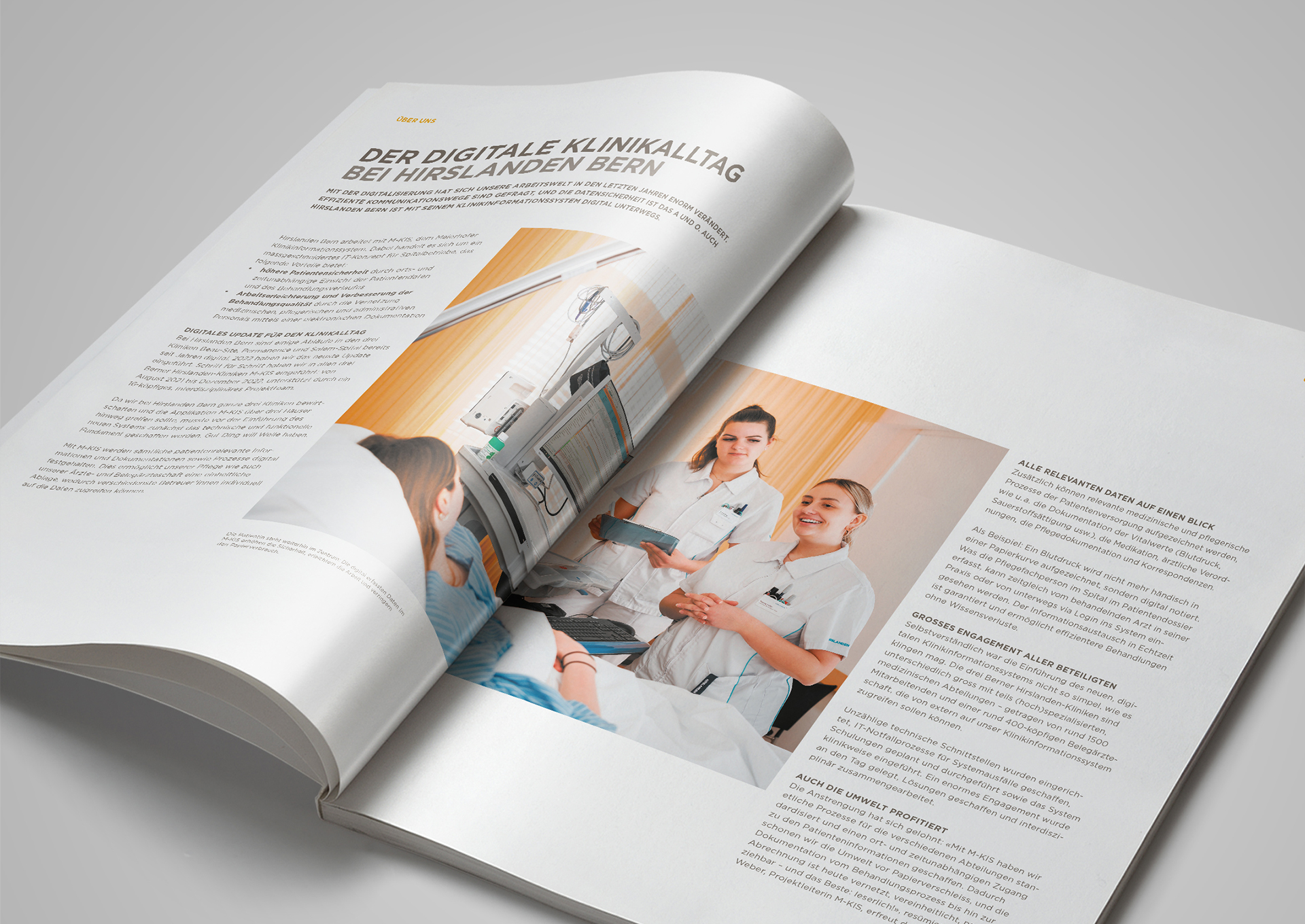 Die Spitalgruppe Hirslanden Bern hatte uns 2022 mit dem Redesign ihres Patientenmagazins «Am Puls der Medizin» beauftragt. Seither zeichnen wir für die Gestaltung der zweimal jährlich erscheinenden Publikation verantwortlich. Für die Titelseite kreieren wir jeweils eine zum Inhalt passende Illustration.