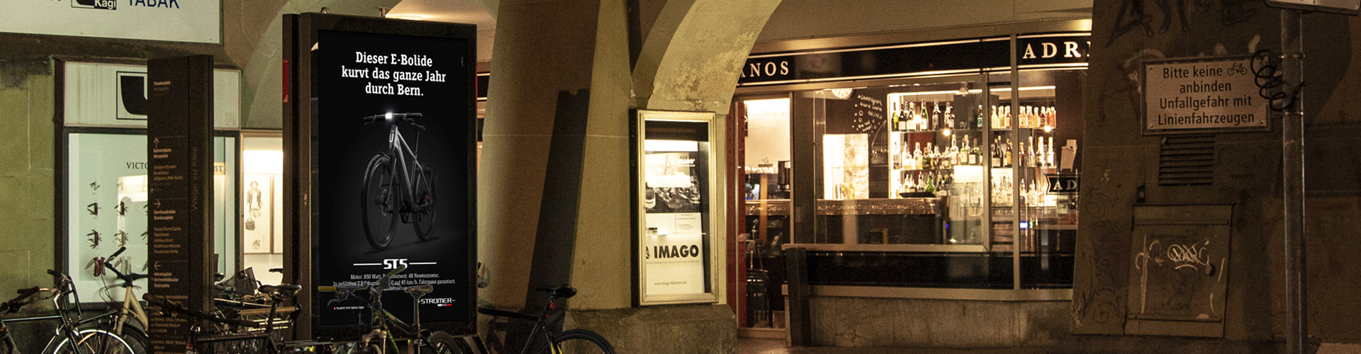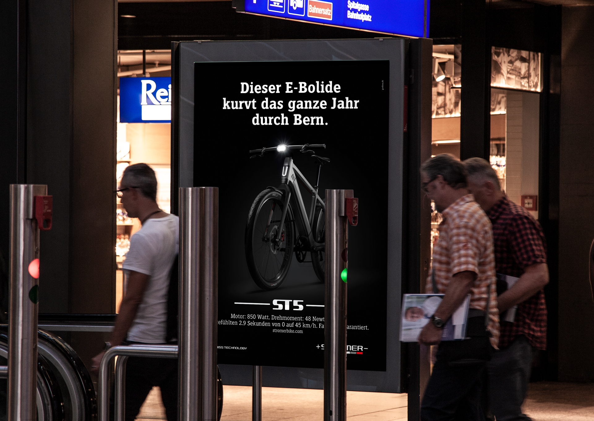 myStromer gehört zu den führenden Schweizer Speed-Pedelec-Marken – und zu unseren ersten Kunden. Als 2019 das E-Auto-Rennen «Swiss E-Prix» in Bern stattfand, war auch Stromer präsent – mit von uns kreierten Plakaten an ausgewählten Standorten.