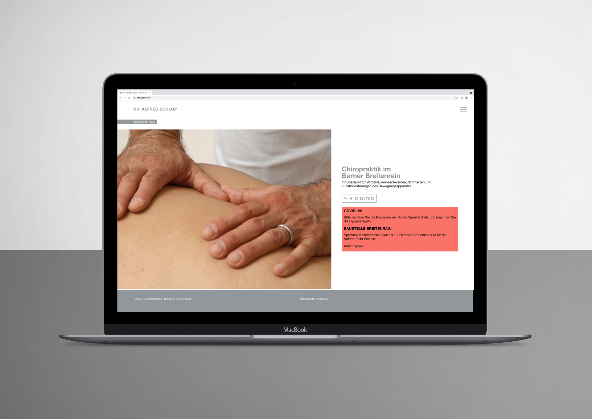 Für den Chiropraktor Dr. Schlup im Berner Breitenrain durften wir die neue Website konzipieren und umsetzen.