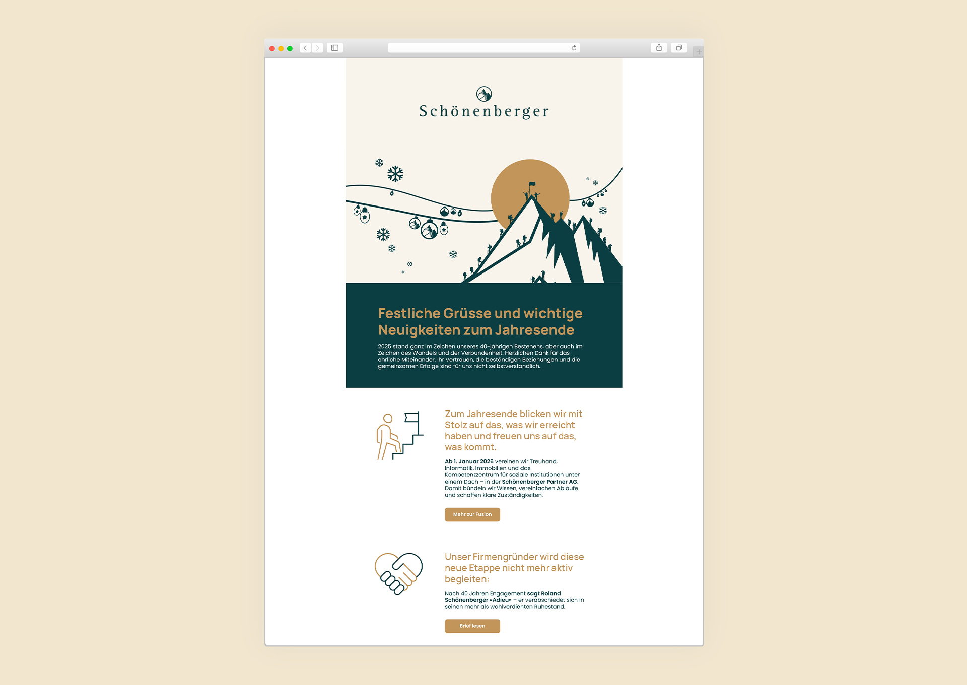 40 Jahre nach ihrer Gründung schlägt die Schönenberger Gruppe ein neues Kapitel auf: Zum Jahreswechsel 2025/26 fusionieren die bisherigen Gesellschaften zur Schönenberger Partner AG. Damit vereint das Unternehmen seine Kompetenzen unter einer Marke und schafft klare Strukturen für die Zukunft.