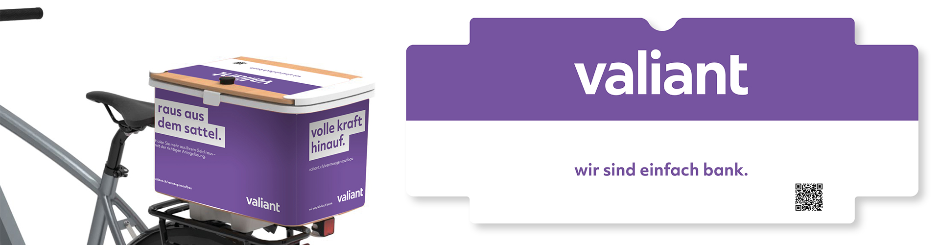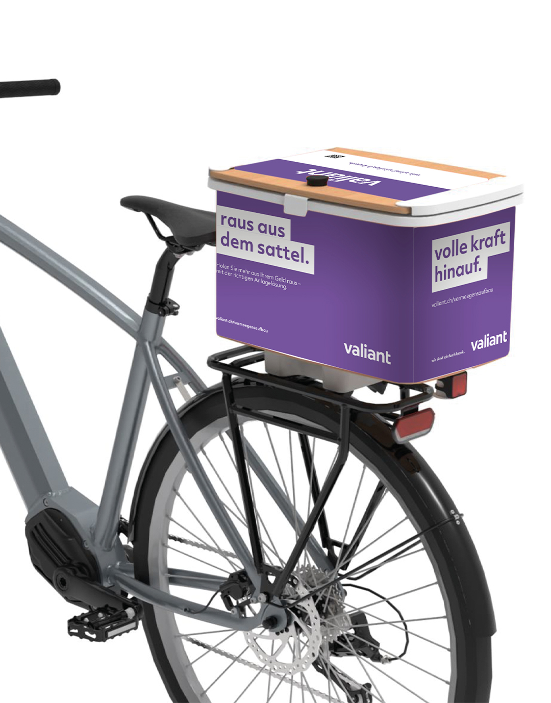 «Working Bicycles» sind eine smarte Art der lokalen, bewegten Ausserwerbung. Die Werbeträger sind dabei Velo-Transportboxen, respektive private Velofahrer:innen, die für ihre alltäglichen «Werbetouren» Geld erhalten. Valiant hat die Veloboxen für die Bewerbung ihrer Anlagelösungen genutzt. Wir haben die Idee «Raus aus dem Sattel» und die Velobox-Gestaltung mit auf den Weg gegeben.